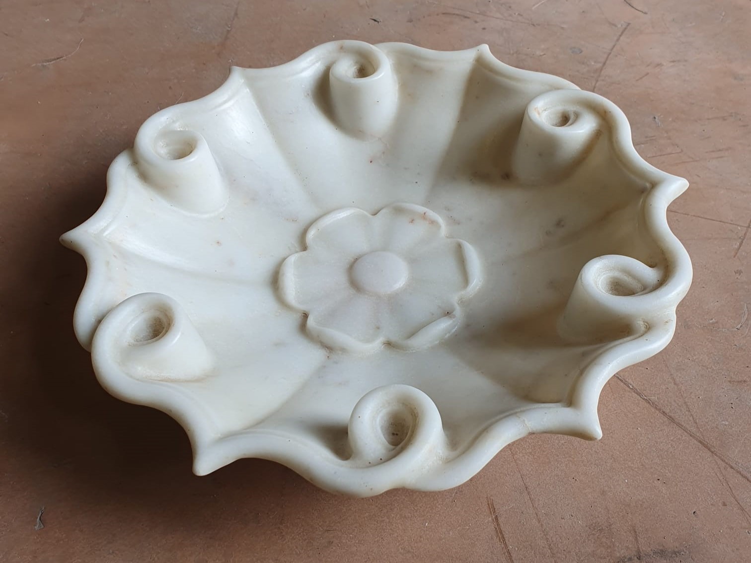 OGV04 - Bellissimo piatto in marmo bianco scolpito a mano