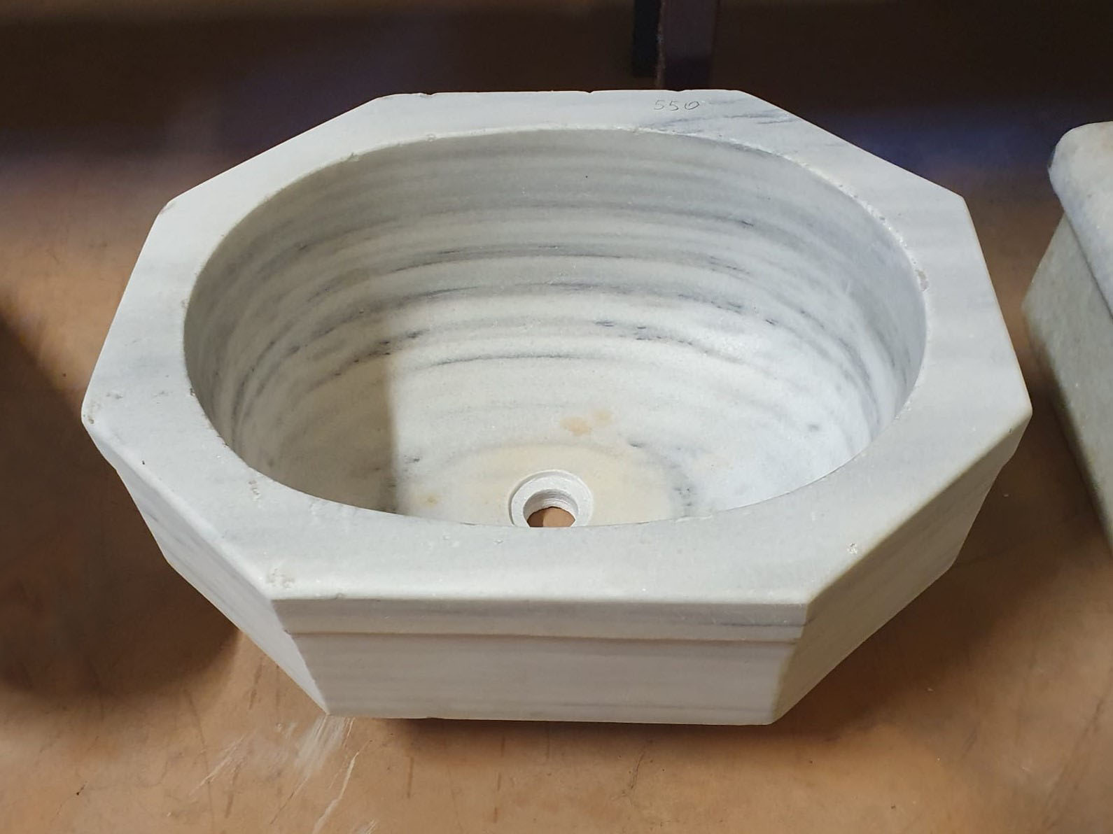 L38 - Lavello da appoggio in marmo bianco cristallino, di ns produzione