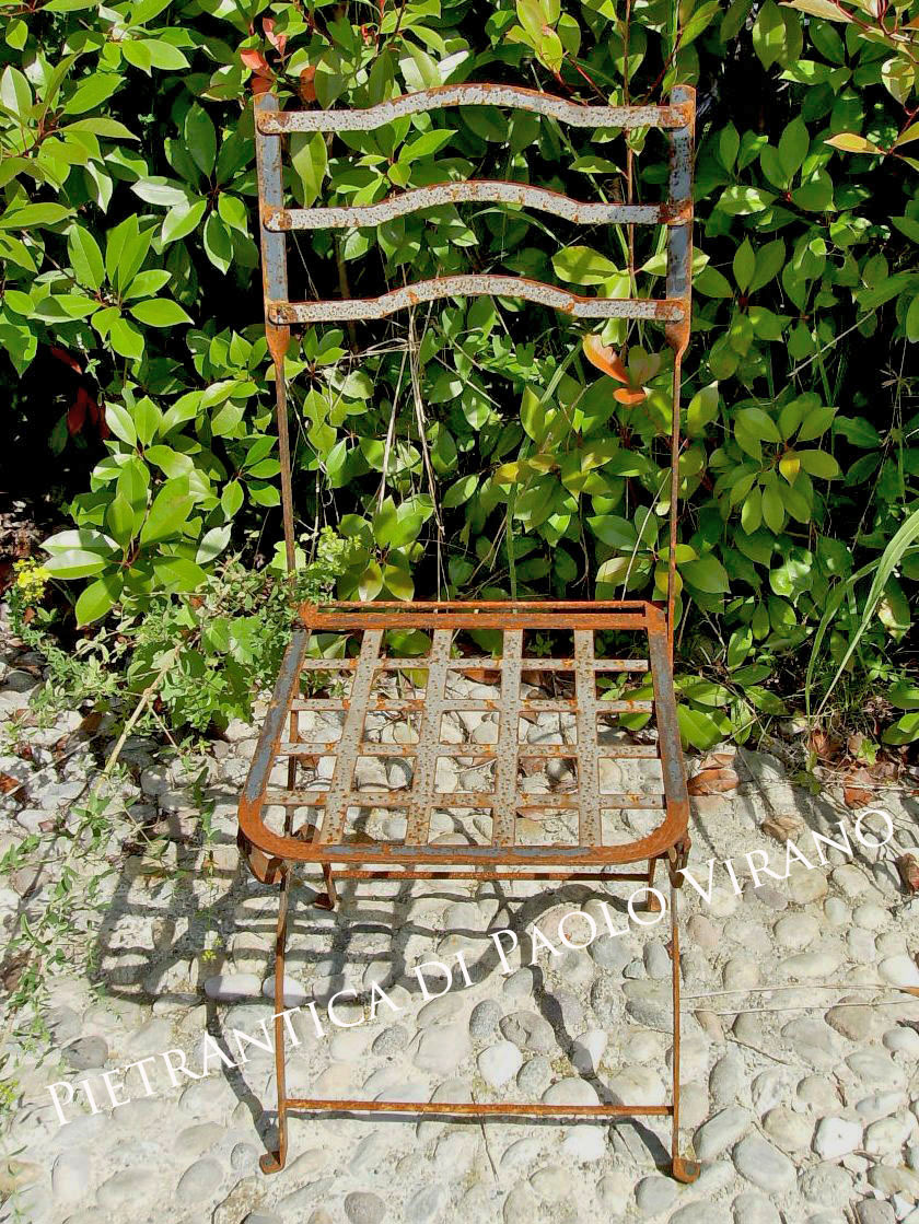 SF24- Sedie pieghevoli in ferrro battuto - essendo fatte a mano con materiali di recupero ogni sedia si differenzia dall'altra per patina